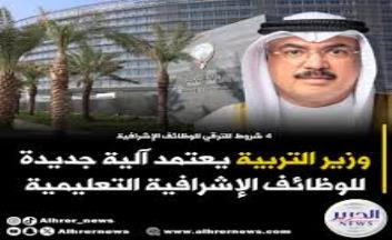 أصدر وزير التربية م. سيد جلال الطبطبائي قرارا يحدد آلية جديدة بشأن الوظائف الاشرافية التعليمية ووظائف التوجيه الفني للمواد الدراسية، والذي تلقت «الأنباء» نسخة منه، وقد حدد 4 شروط للترقي للوظائف الاشرافية وهي معايير الترشيح 25% والاختبار التحريري 25% والمقابلة الشخصية 25% والدورات التدريبية 25% وجاء القرار على النحو التالي: