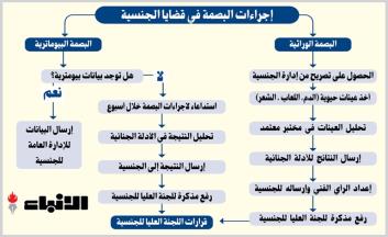وحدد القرار البصمة البيومترية عن طريق بصمات الأصابع وقزحية العين وبصمة الوجه ومضاهاة الصورة الفوتوغرافية، على أن يتم إجراء البصمة البيومترية لدى الإدراة العامة للأدلة الجنائية بناء على طلب الإدارة العامة للجنسية او من يحدده وزير الداخلية، على ان تقوم إدارة الجنسية بإعداد مذكرة بالرأي حول مدلولات الفحص ونتيجته ورفعها إلى اللجنة العليا للجنسية لاتخاذ اللازم.